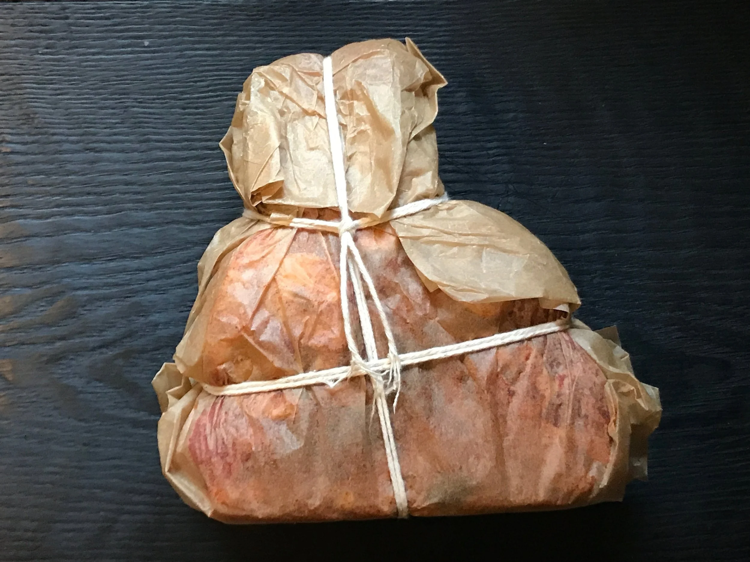 Now wrap it and tie it nice and tight before refrigerating overnight. This part is important, however if you go too long, (perhaps a few days), it starts to over season and taste more like pastrami.
